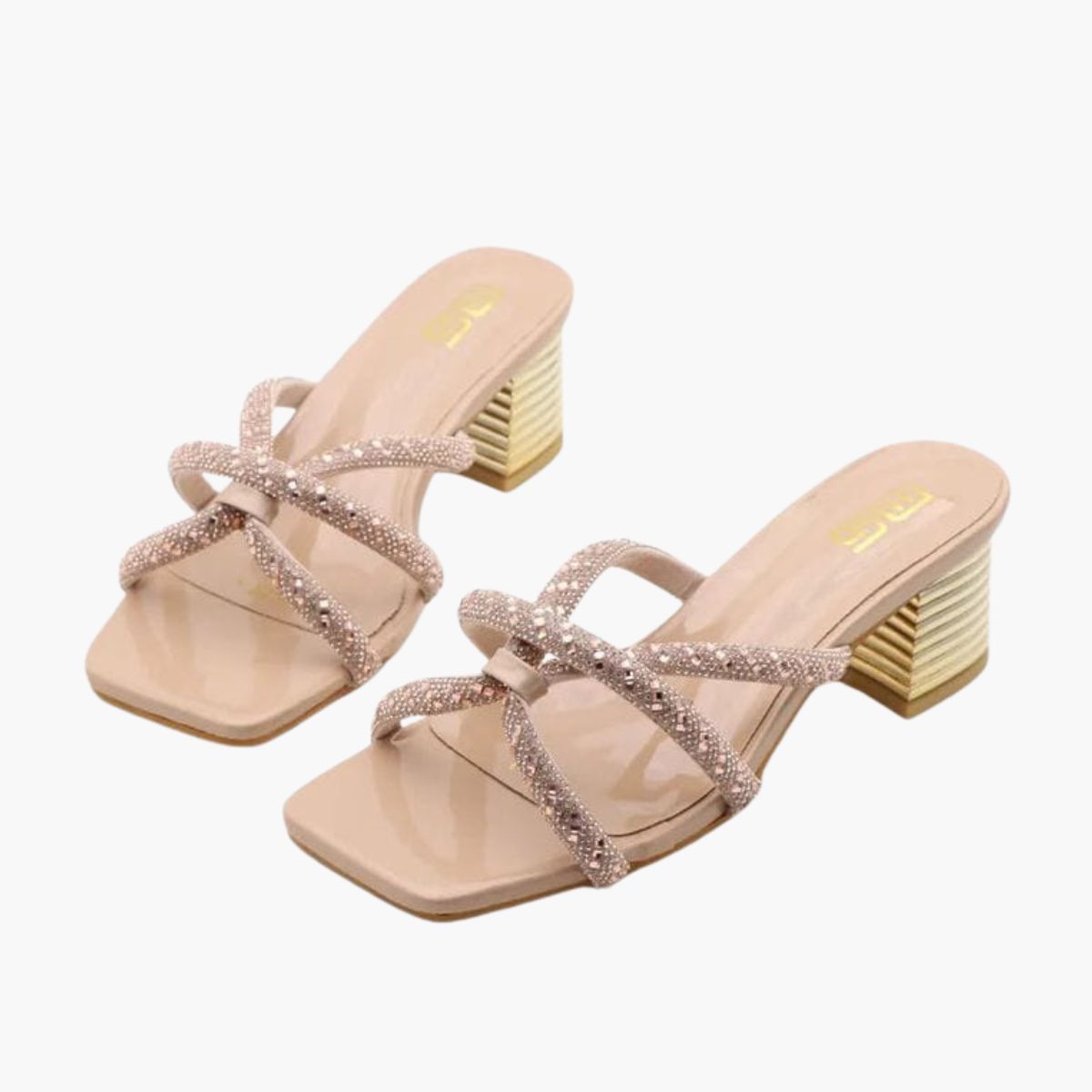 গ্ল্যামারাস নুড ব্লক হিল স্যান্ডাল—রাইনস্টোন স্ট্র্যাপসহ পার্টি ও ফরমাল লুকের জন্য পারফেক্ট।